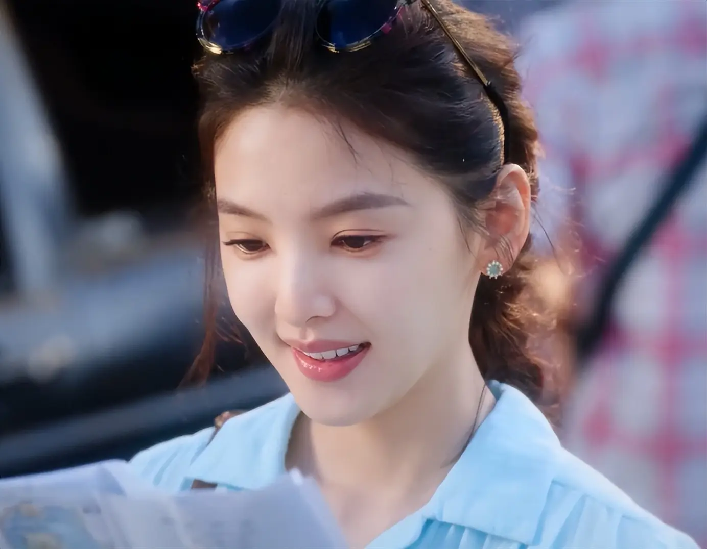 出场就是一身水蓝色衣造型,搭配墨镜,时尚包包妥妥大美女,怪不得仅用一眼,就让徐胜利喜欢上了。