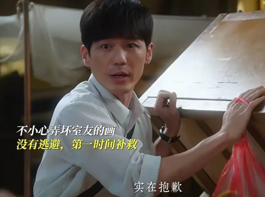 徐胜利仅用一秒就毁掉了室友的画,至少宿舍里他与另外三个人水火不容,为未来慢慢增加感情打下基础。